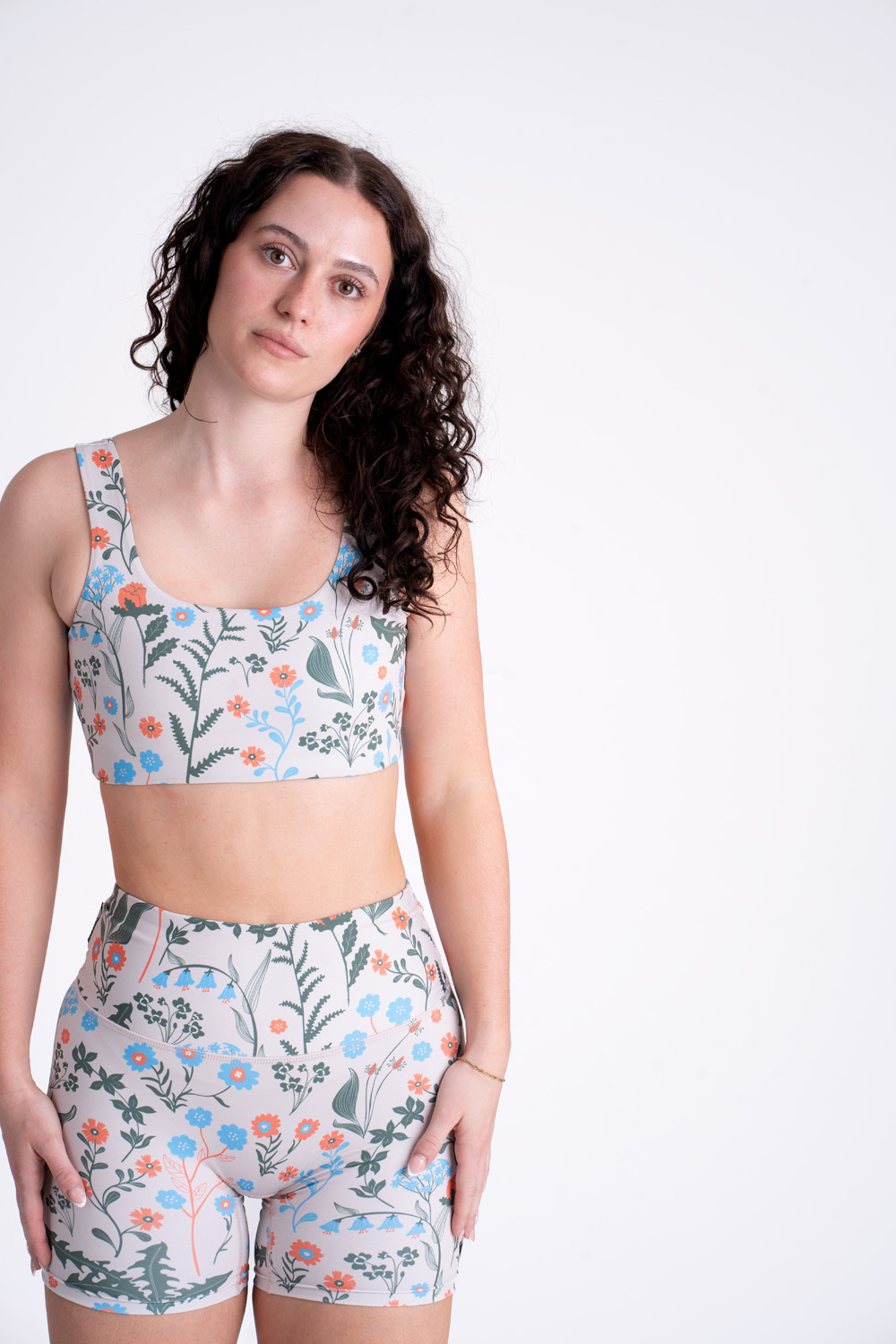 Abraka® krátke šortky Kvietky sú ušité v novom strihu bez predného šva pre ešte väčšie pohodlie. Majú skryté vrecko v páse kde poľahky skováte telefón. Vysoký dvojmo šitý pás krásne formuje postavu, drží na mieste a nešmýka sa. Vďaka použitiu kvalitných európskych recyklovaných materiálov sú doslova ako druhá koža.